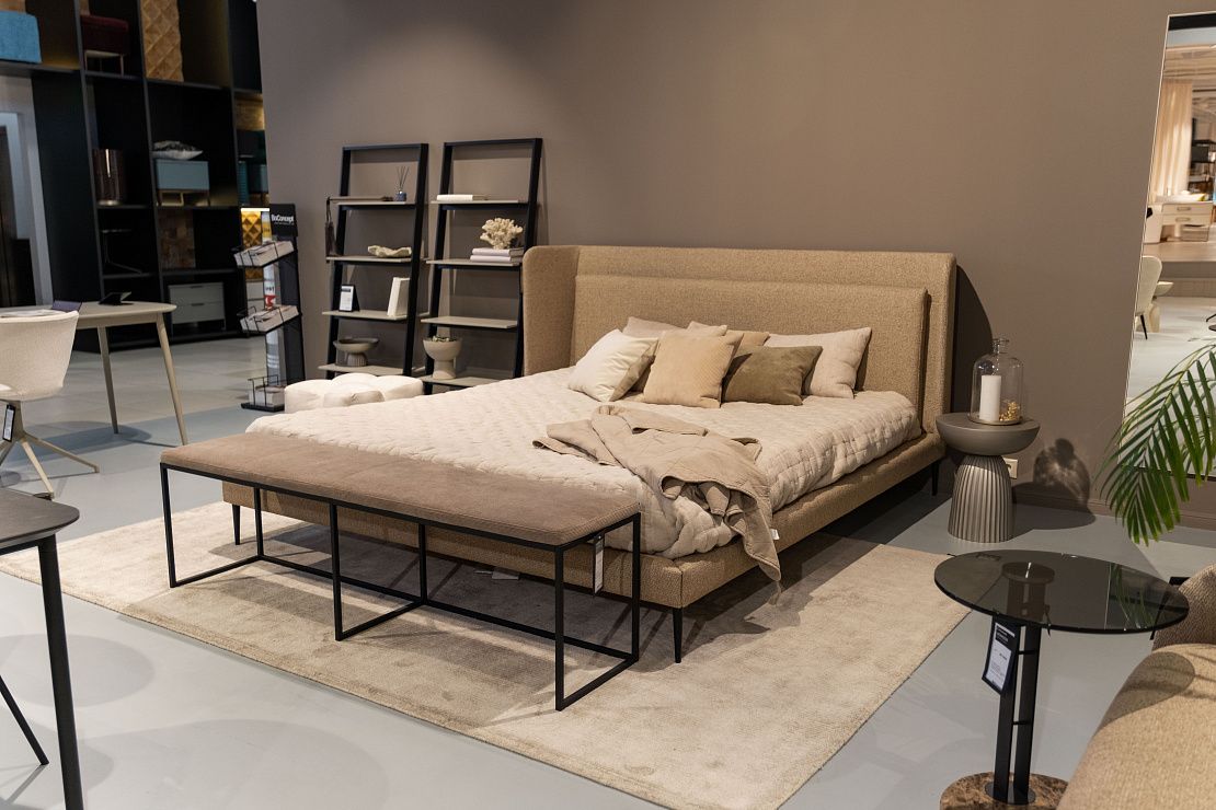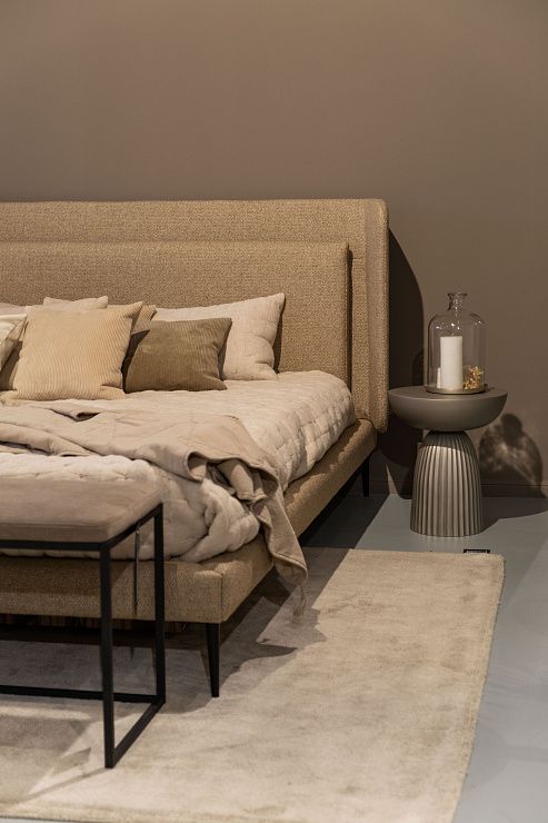 Полностью обитая кровать доступна в более чем 100 разных вариантах ткани и кожи, что позволяет создать ваше собственное решение для спальни.