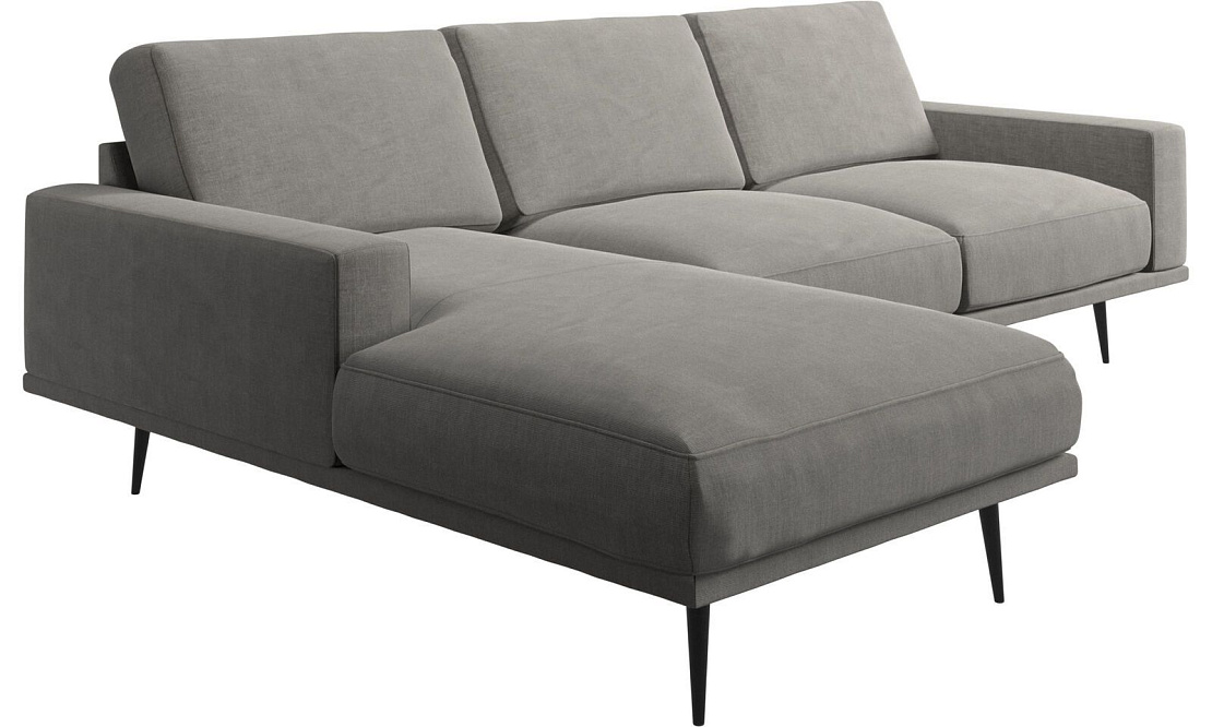 Диван Carlton с модулем для отдыха - Napoli 2250 Ткань серебристо-серая Ножки - Черный матовый лак, 19cm, 4200,