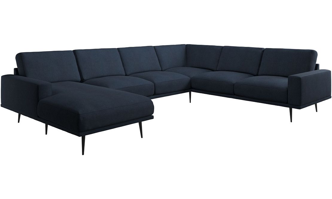 Угловой диван Carlton с модулем для отдыха - Skagen 3163 Темно-синяя ткань Ножки - Черный матовый лак, 19cm, 4200,