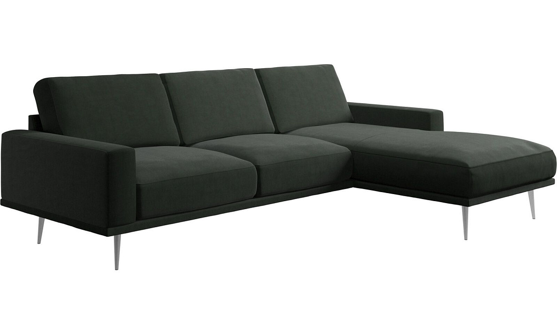 Диван Carlton с модулем для отдыха - Frisco 2058 Темно-зеленая ткань Ножки - Матовая сталь, 19cm, 4200,
