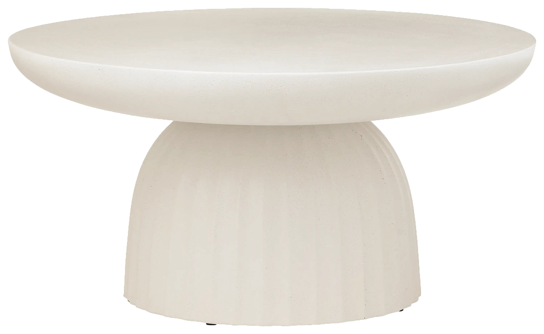 Грубая текстура бетона сочетается с изящными изгибами в оттенке White/Beige, создавая кофейный столик с архитектурным характером и мягкой формой — идеально для современных интерьеров.