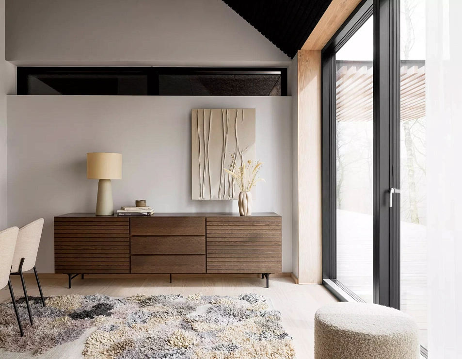 Буфет выполнен со скошенными краями. Эта изысканная деталь делает его абсолютно красивым, обеспечивает гармонию и придает буфету элегантность и эксклюзивность.