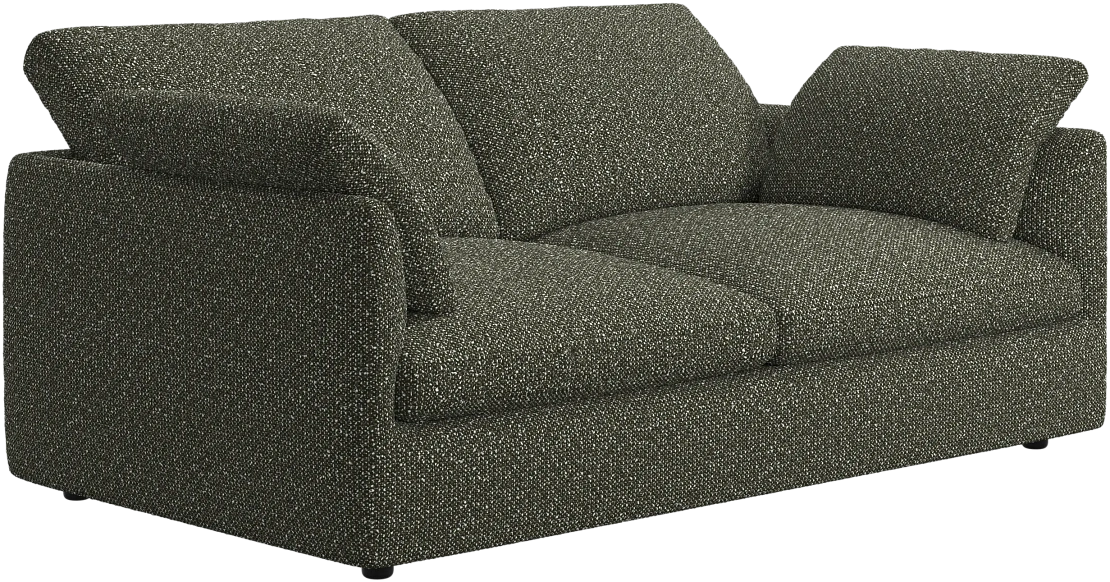 Аккуратно присборенные подушки спинки создают скульптурный и гостеприимный силуэт, который выглядит одновременно воздушным и уютным.
