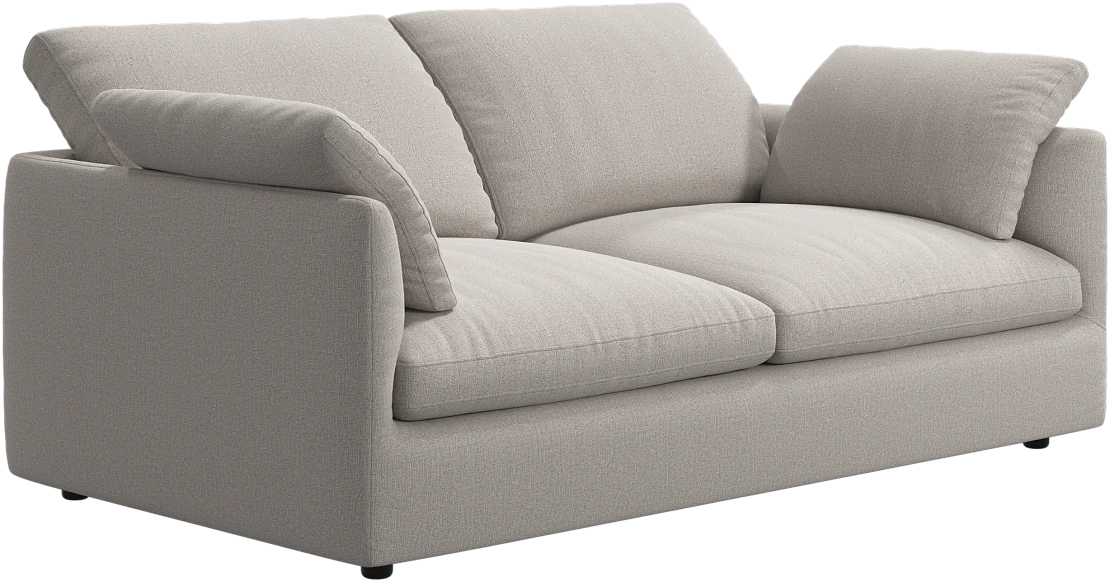 Аккуратно присборенные подушки спинки создают скульптурный и гостеприимный силуэт, который выглядит одновременно воздушным и уютным.