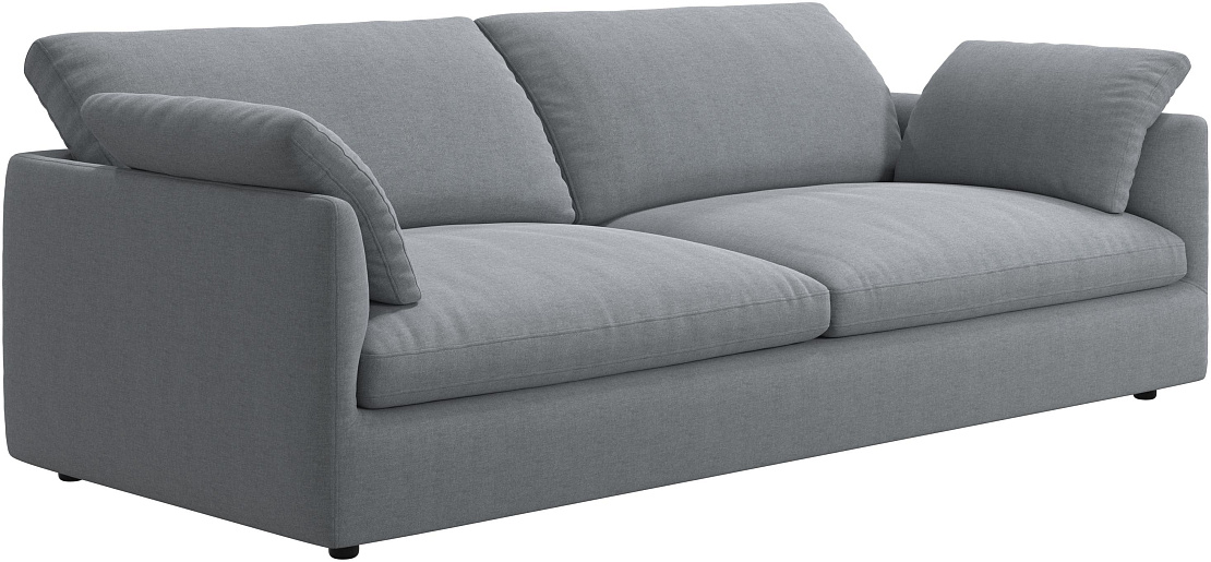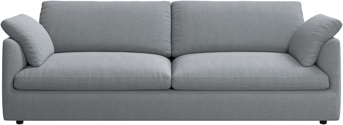 Аккуратно присборенные подушки спинки создают скульптурный и гостеприимный силуэт, который выглядит одновременно воздушным и уютным.