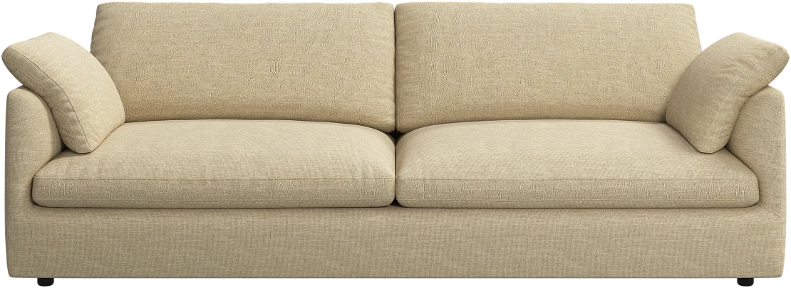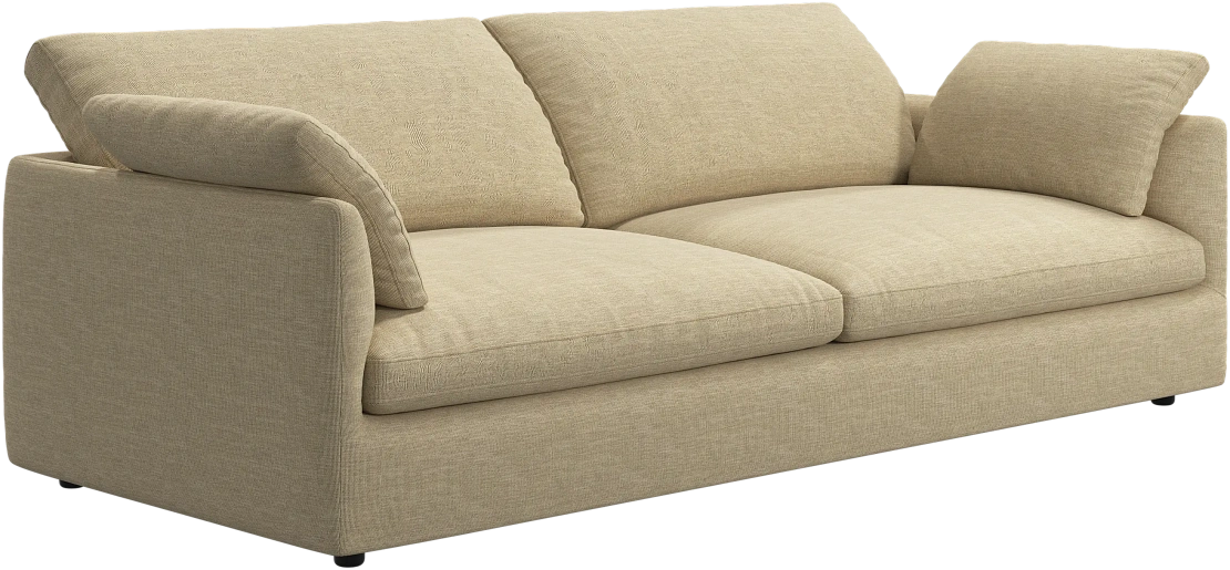Аккуратно присборенные подушки спинки создают скульптурный и гостеприимный силуэт, который выглядит одновременно воздушным и уютным.