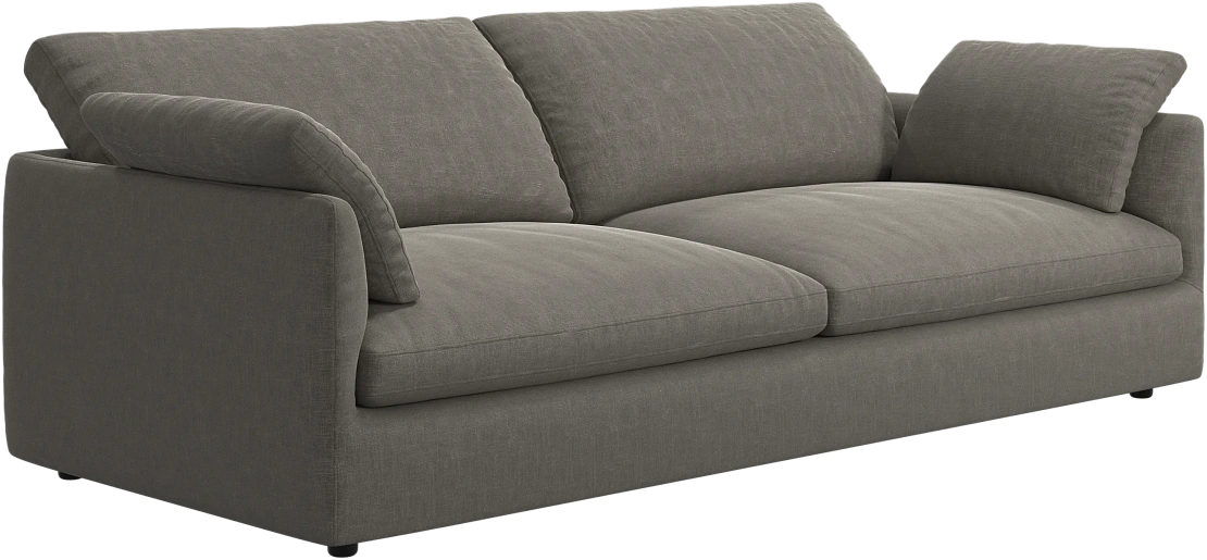 Аккуратно присборенные подушки спинки создают скульптурный и гостеприимный силуэт, который выглядит одновременно воздушным и уютным.