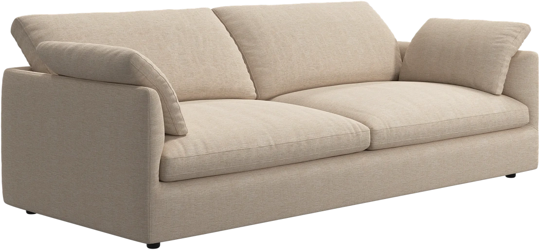 Аккуратно присборенные подушки спинки создают скульптурный и гостеприимный силуэт, который выглядит одновременно воздушным и уютным.
