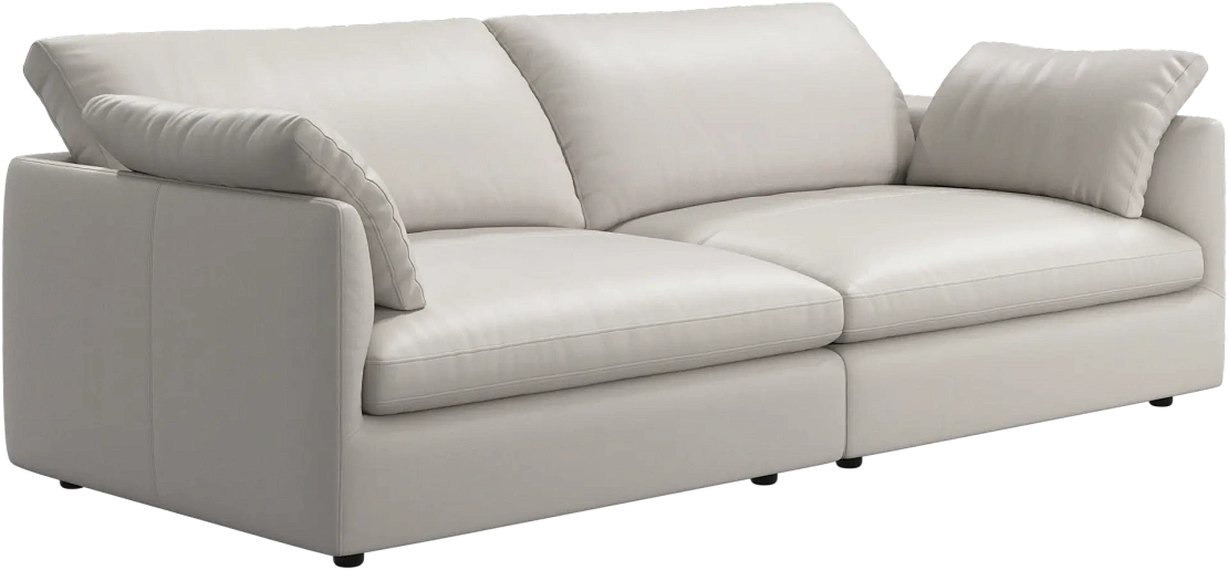 Аккуратно присборенные подушки спинки создают скульптурный и гостеприимный силуэт, который выглядит одновременно воздушным и уютным.
