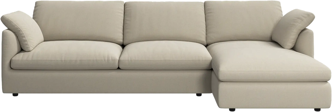 Аккуратно присборенные подушки спинки создают скульптурный и гостеприимный силуэт, который выглядит одновременно воздушным и уютным.
