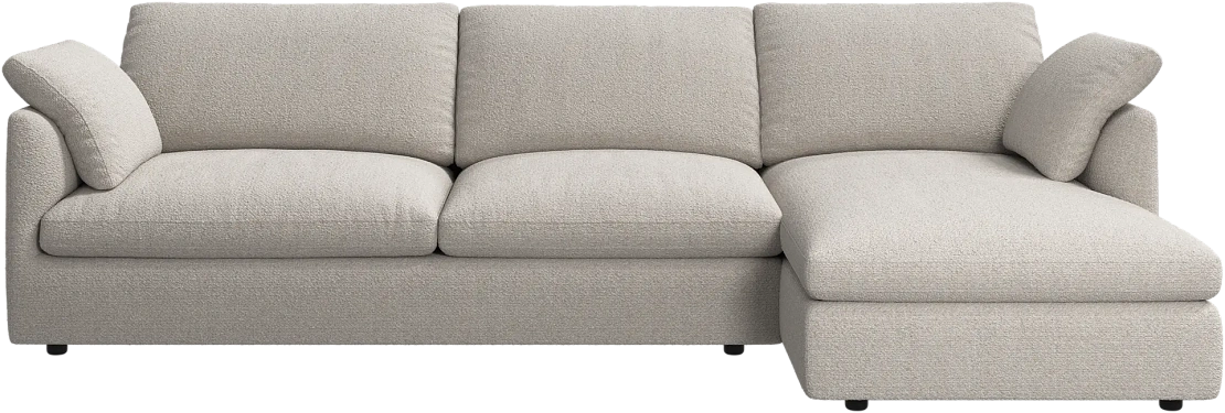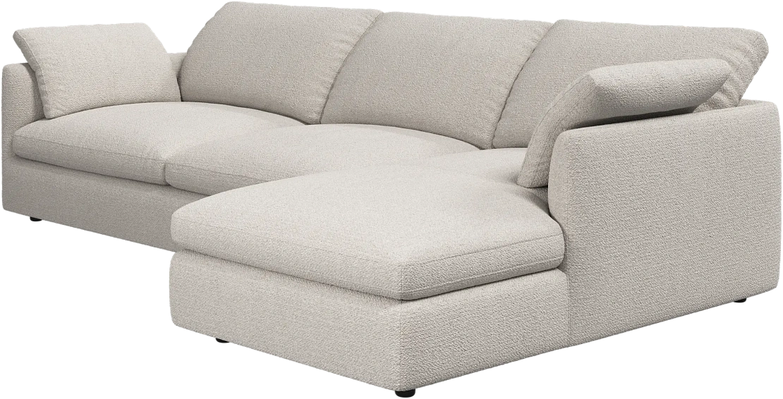 Аккуратно присборенные подушки спинки создают скульптурный и гостеприимный силуэт, который выглядит одновременно воздушным и уютным.