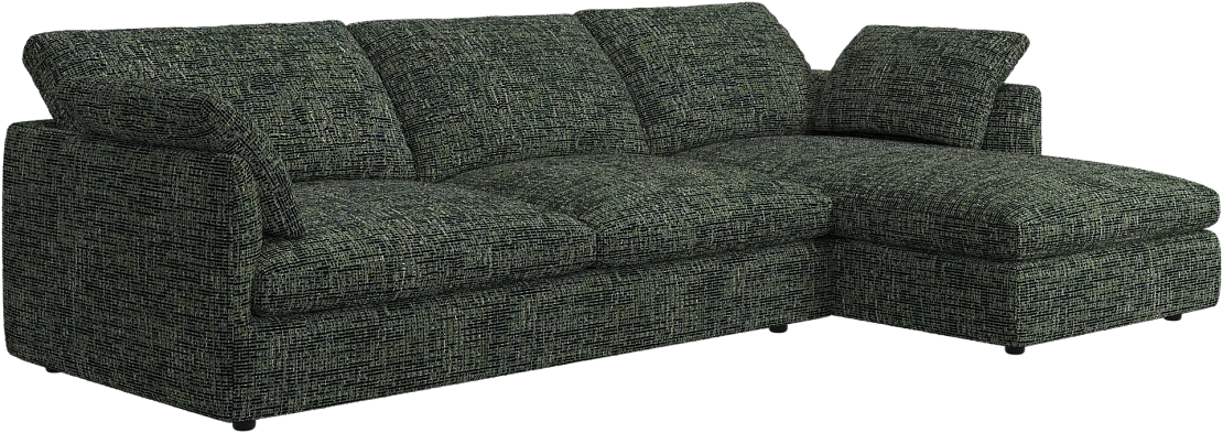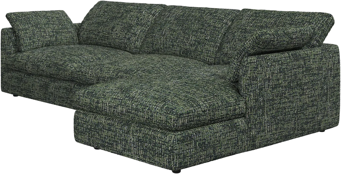 Аккуратно присборенные подушки спинки создают скульптурный и гостеприимный силуэт, который выглядит одновременно воздушным и уютным.