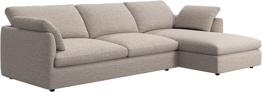 Аккуратно присборенные подушки спинки создают скульптурный и гостеприимный силуэт, который выглядит одновременно воздушным и уютным.