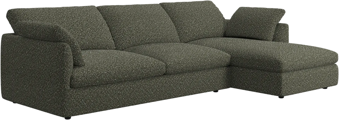 Аккуратно присборенные подушки спинки создают скульптурный и гостеприимный силуэт, который выглядит одновременно воздушным и уютным.