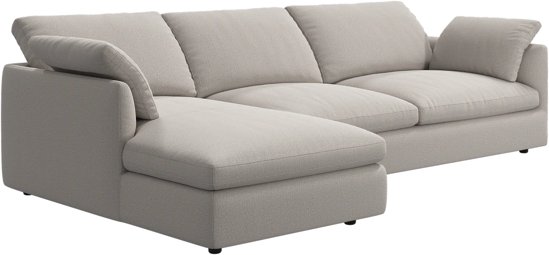 Аккуратно присборенные подушки спинки создают скульптурный и гостеприимный силуэт, который выглядит одновременно воздушным и уютным.