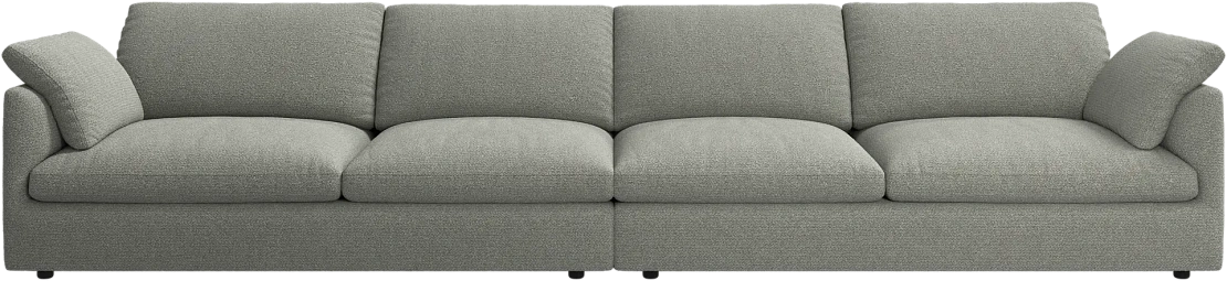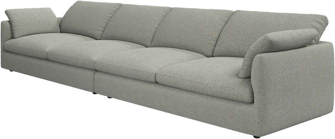 Аккуратно присборенные подушки спинки создают скульптурный и гостеприимный силуэт, который выглядит одновременно воздушным и уютным.
