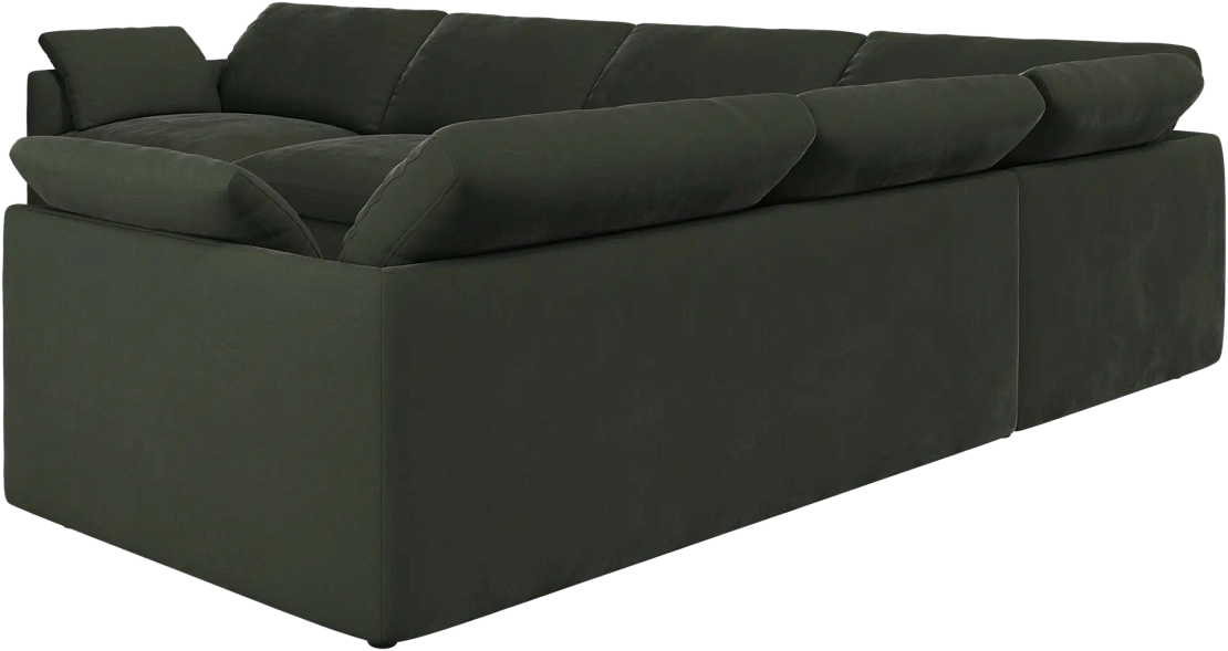 Аккуратно присборенные подушки спинки создают скульптурный и гостеприимный силуэт, который выглядит одновременно воздушным и уютным.