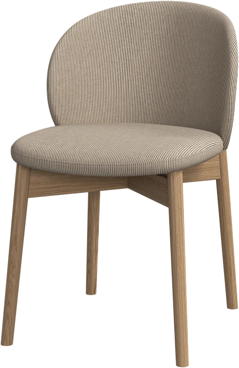 Основание из светлого или тёмного дуба придаёт стулу тёплый характер и подчёркивает его скульптурный силуэт.