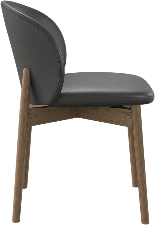 Основание из светлого или тёмного дуба придаёт стулу тёплый характер и подчёркивает его скульптурный силуэт.