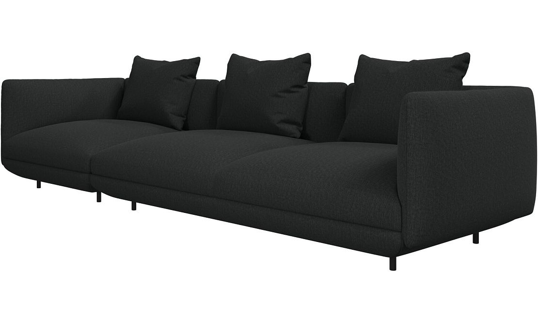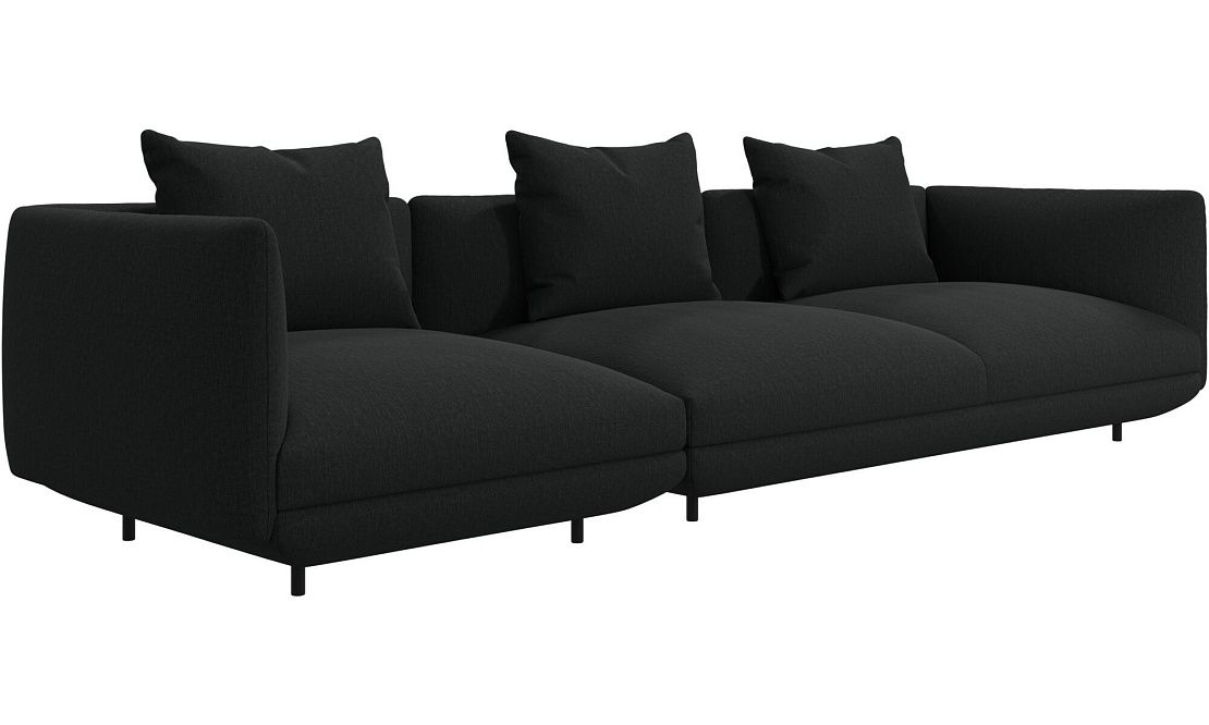 Диван Salamanca отличается щедрыми пропорциями и мягкими изгибами. Их подчеркивают тонкие, едва заметные трубчатые ножки черного цвета, создавая низкий 'парящий' силуэт.