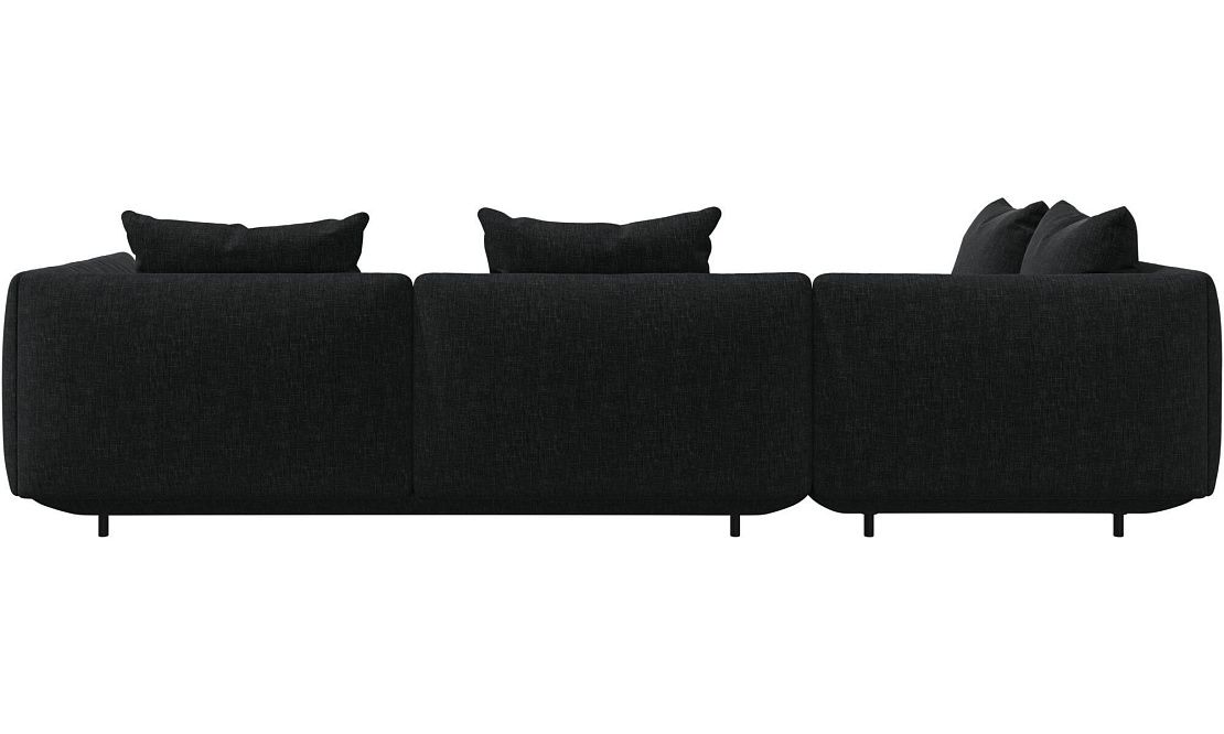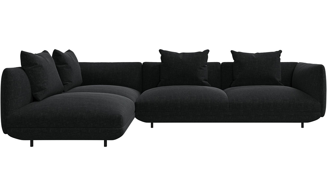 Диван Salamanca отличается щедрыми пропорциями и мягкими изгибами. Их подчеркивают тонкие, едва заметные трубчатые ножки черного цвета, создавая низкий 'парящий' силуэт.