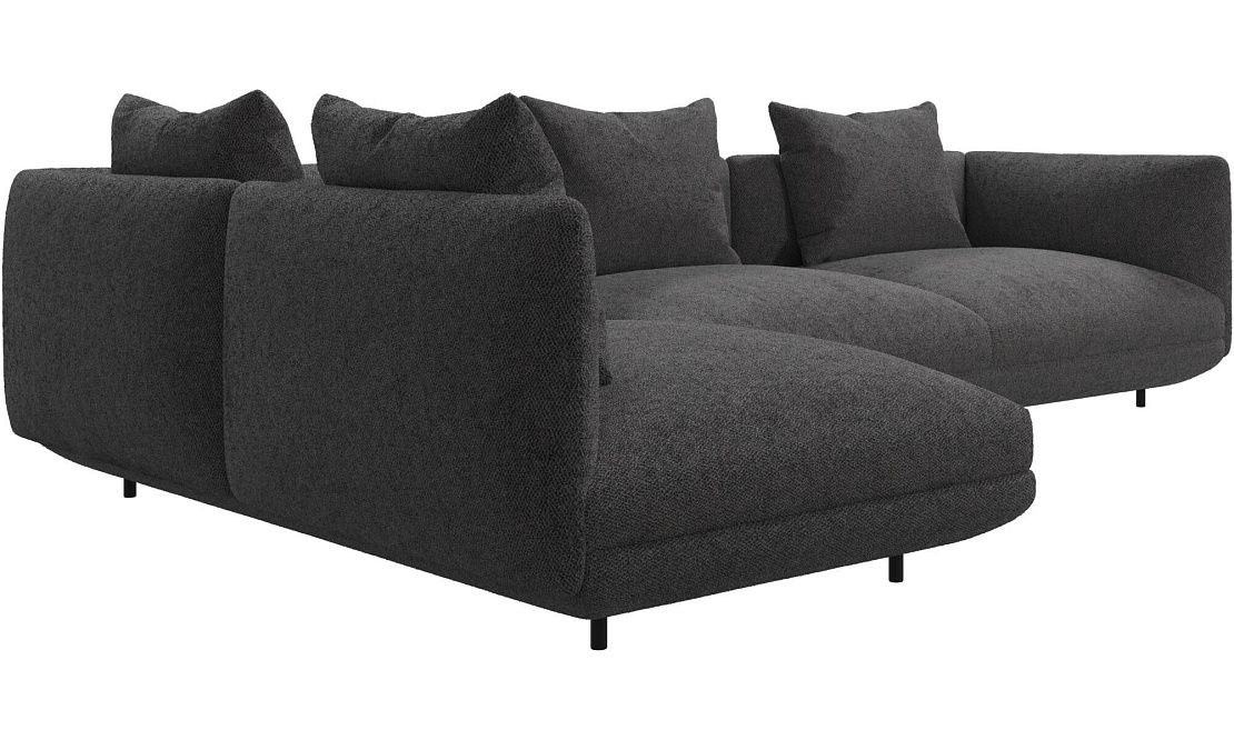 Диван Salamanca отличается щедрыми пропорциями и мягкими изгибами. Их подчеркивают тонкие, едва заметные трубчатые ножки черного цвета, создавая низкий 'парящий' силуэт.