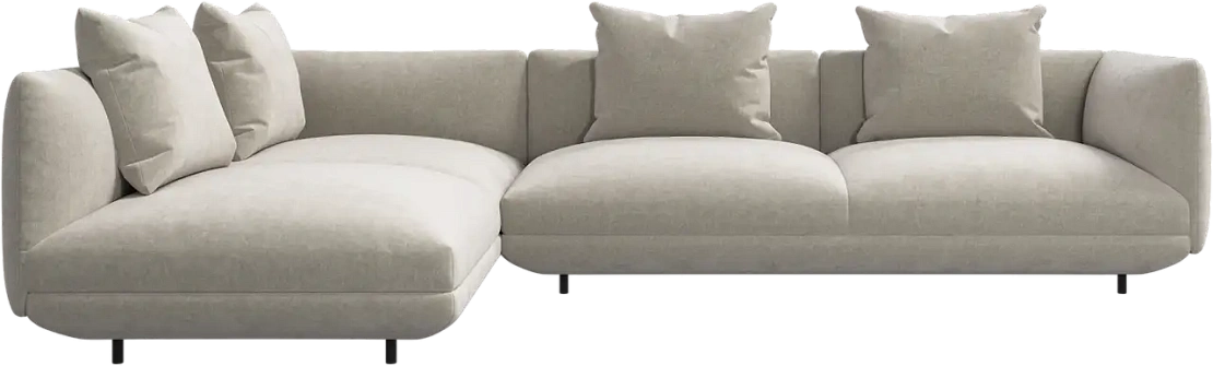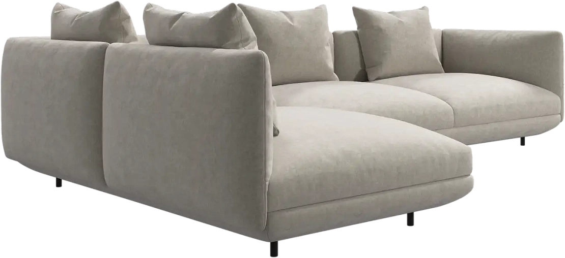 Диван Salamanca отличается щедрыми пропорциями и мягкими изгибами. Их подчеркивают тонкие, едва заметные трубчатые ножки черного цвета, создавая низкий 'парящий' силуэт.