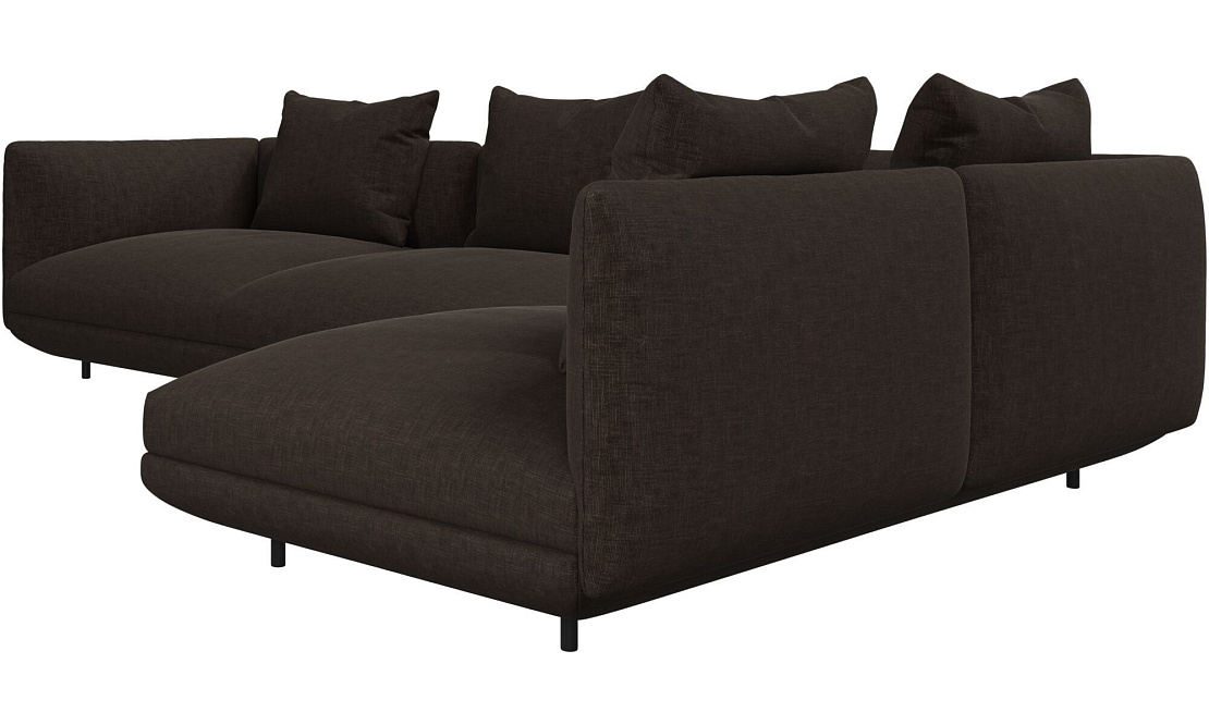 Диван Salamanca отличается щедрыми пропорциями и мягкими изгибами. Их подчеркивают тонкие, едва заметные трубчатые ножки черного цвета, создавая низкий 'парящий' силуэт.