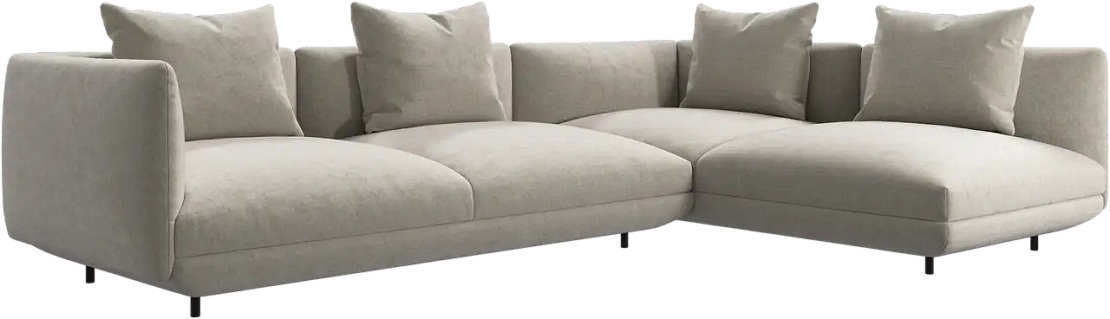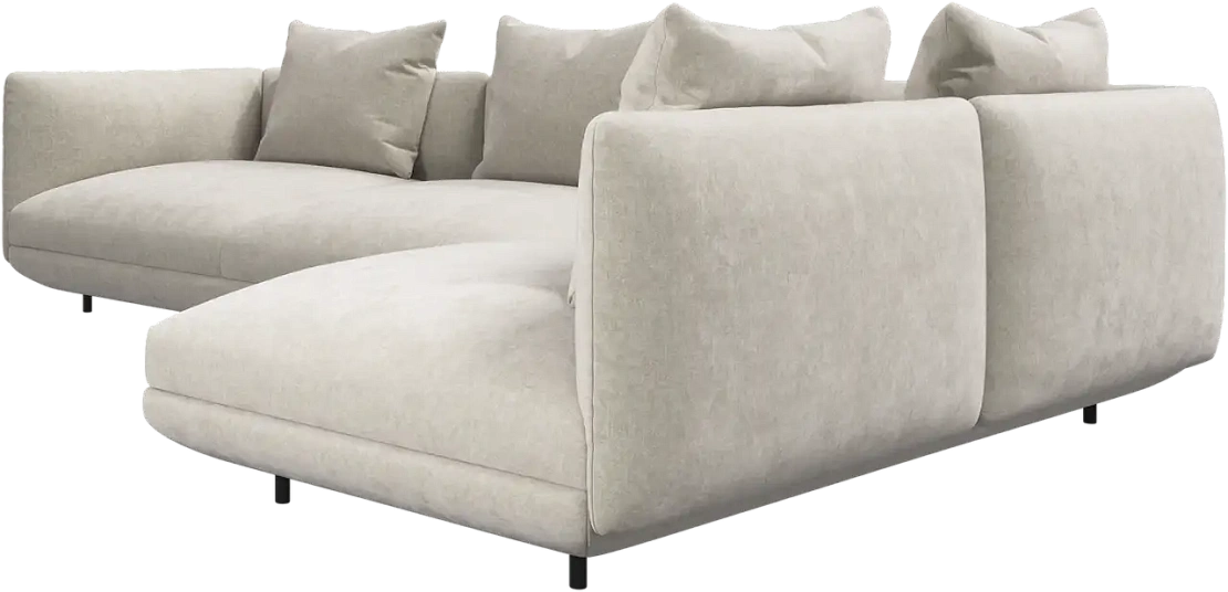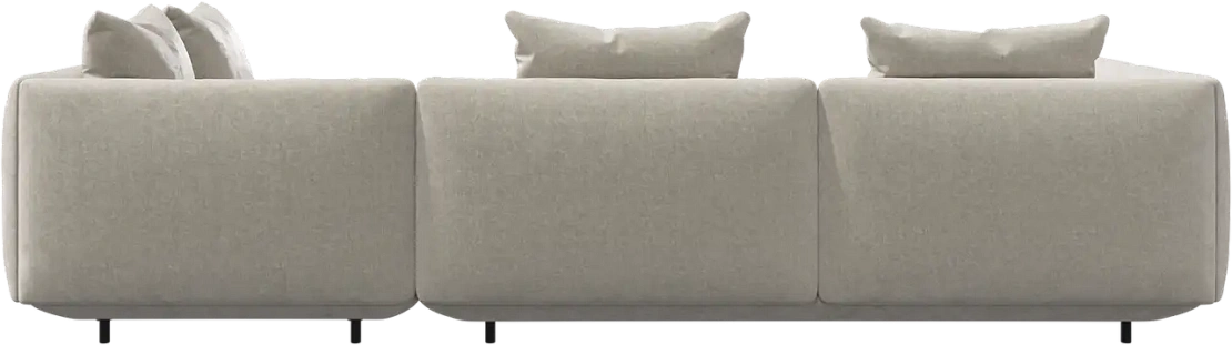 Диван Salamanca отличается щедрыми пропорциями и мягкими изгибами. Их подчеркивают тонкие, едва заметные трубчатые ножки черного цвета, создавая низкий 'парящий' силуэт.