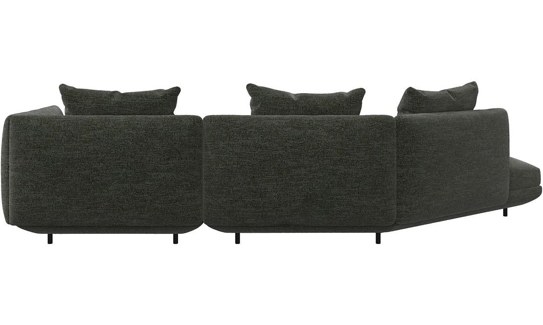 Диван Salamanca отличается щедрыми пропорциями и мягкими изгибами. Их подчеркивают тонкие, едва заметные трубчатые ножки черного цвета, создавая низкий 'парящий' силуэт.