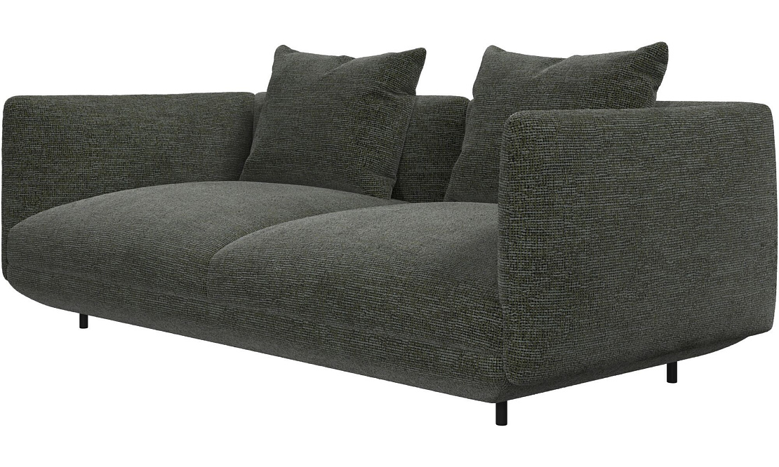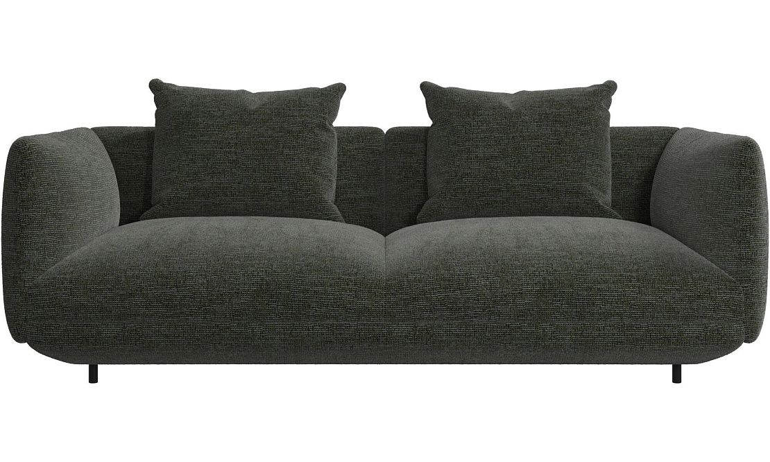 Диван Salamanca отличается щедрыми пропорциями и мягкими изгибами. Их подчеркивают тонкие, едва заметные трубчатые ножки черного цвета, создавая низкий 'парящий' силуэт.