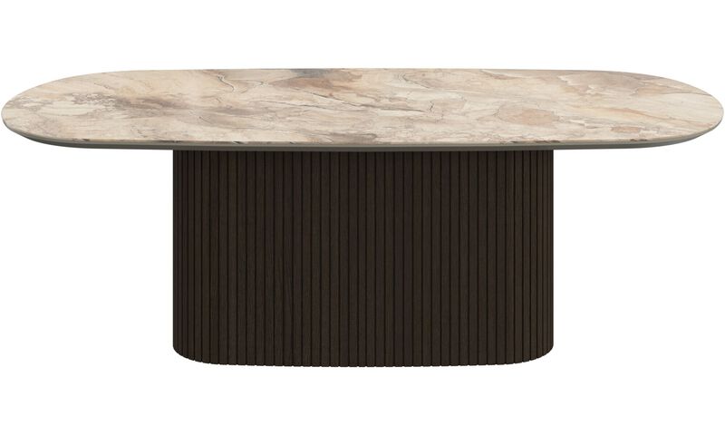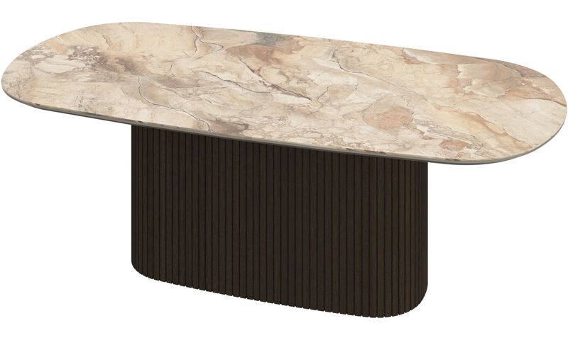Журнальный столик Santiago имеет овальное или круглое основание в форме колонны и поверхность со скошенными краями. Он будет эффектно смотреться в любом пространстве.