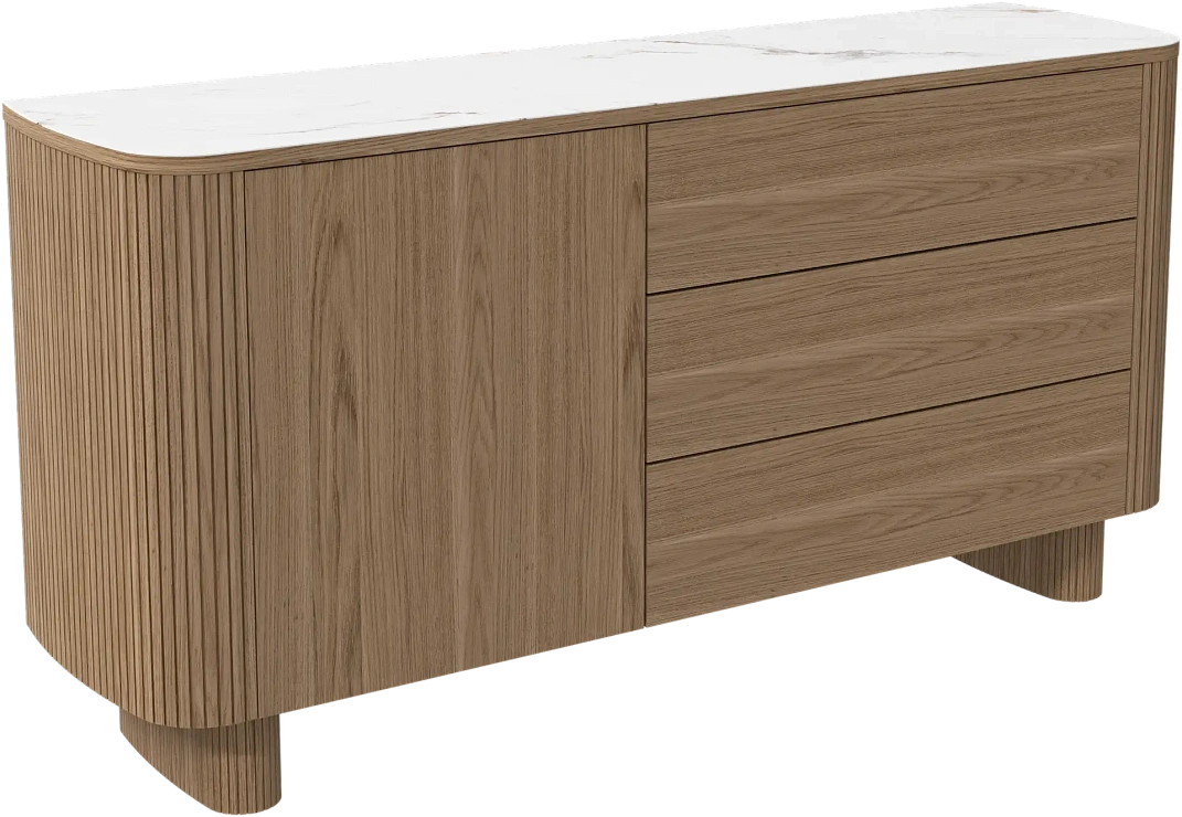 Большой буфет доступен в двух размерах: стандартный размер содержит две дверцы, а маленький — одну. Оставшееся пространство для хранения можно персонализировать в соответствии с вашими предпочтениями.
