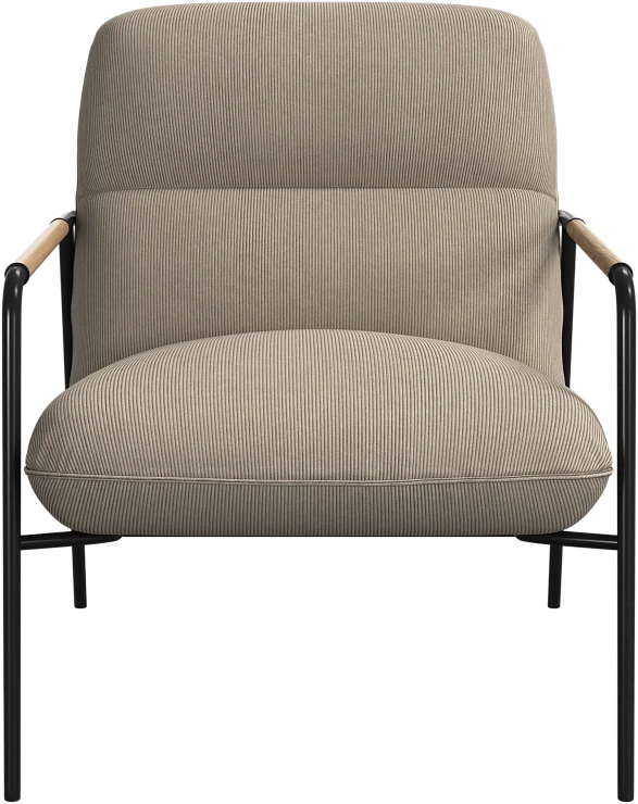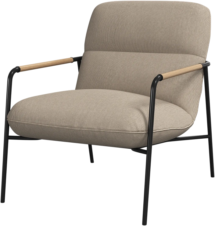 Матовая чёрная рама и дубовые подлокотники подчёркивают лаконичный дизайн и добавляют ему тёплый, натуральный акцент.