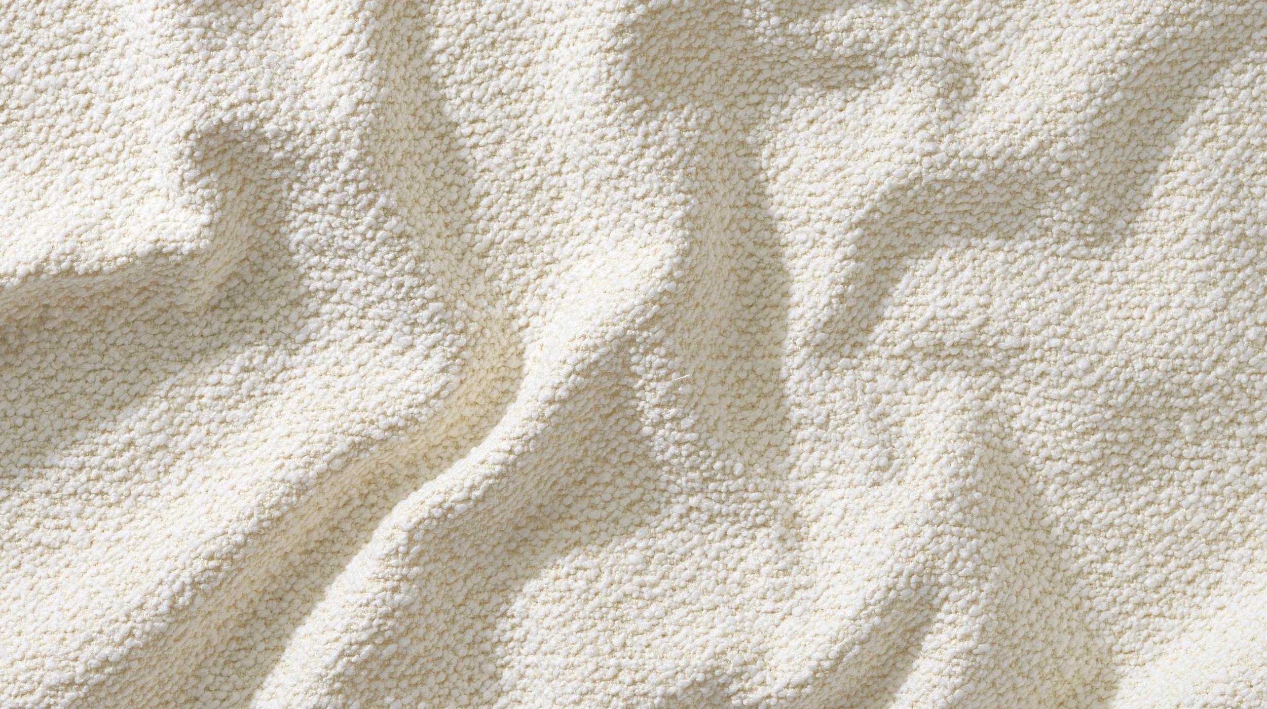 Rimini— это ткань из полиэстера букле, которая с лёгкостью сочетает в себе роскошь и долговечность. Она изготовлена из волокон с петлями и ворсом, обладает мягкой текстурой, способствующей созданию уютной атмосферы. Эта вневременная ткань дарит ощущение стиля, который остаётся с вами надолго. Доступна в классическом белом цвете и в специальном оттенке Blossom, эксклюзивно подобранном для наших пуфов Sweet Art