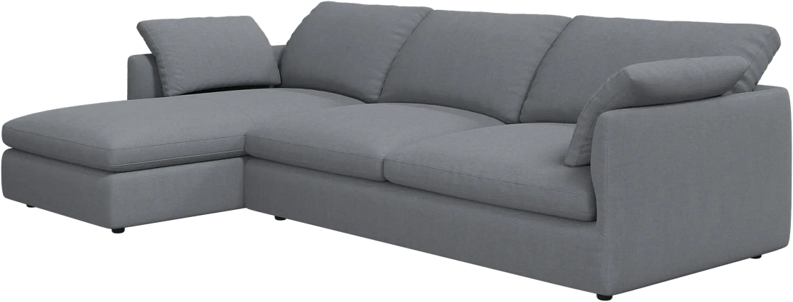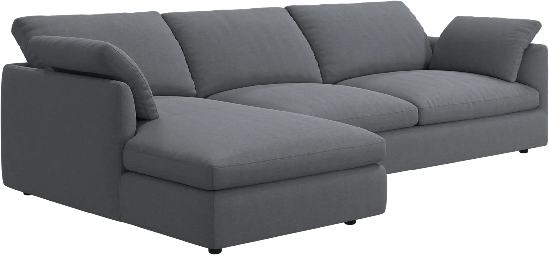 Аккуратно присборенные подушки спинки создают скульптурный и гостеприимный силуэт, который выглядит одновременно воздушным и уютным.
