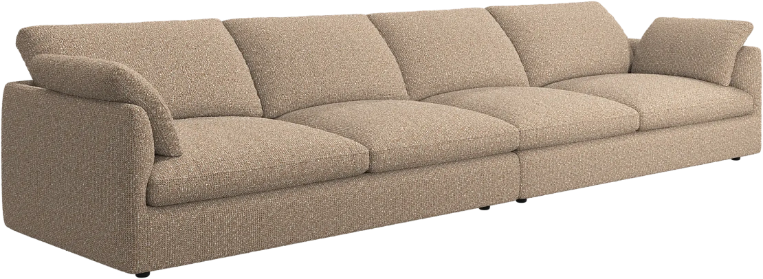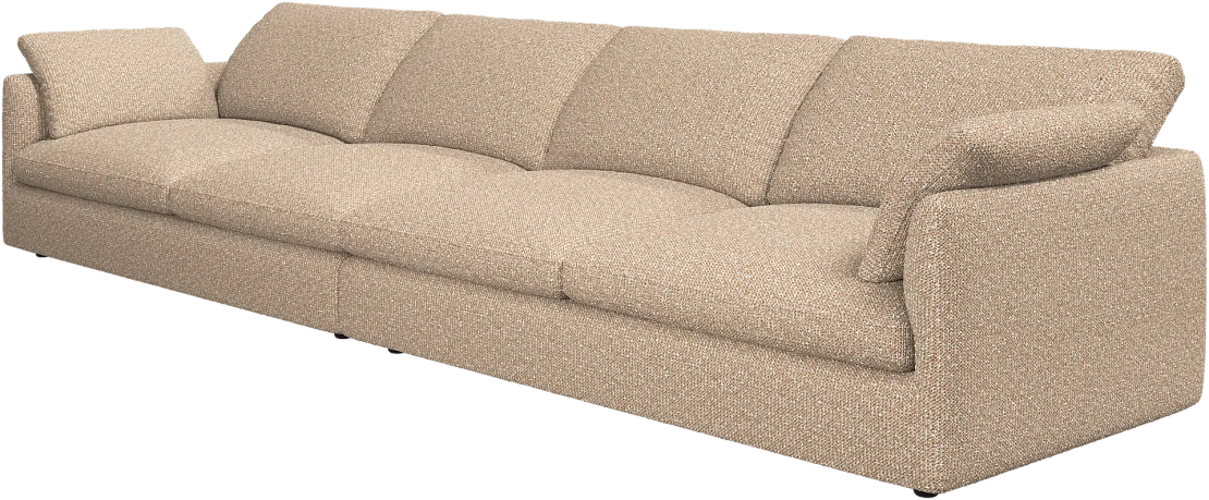 Аккуратно присборенные подушки спинки создают скульптурный и гостеприимный силуэт, который выглядит одновременно воздушным и уютным.