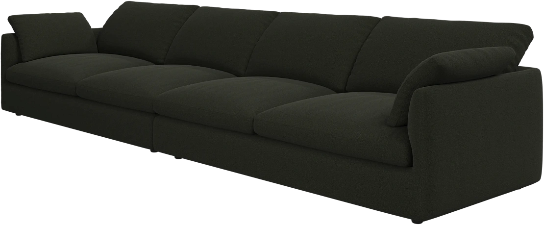 Аккуратно присборенные подушки спинки создают скульптурный и гостеприимный силуэт, который выглядит одновременно воздушным и уютным.
