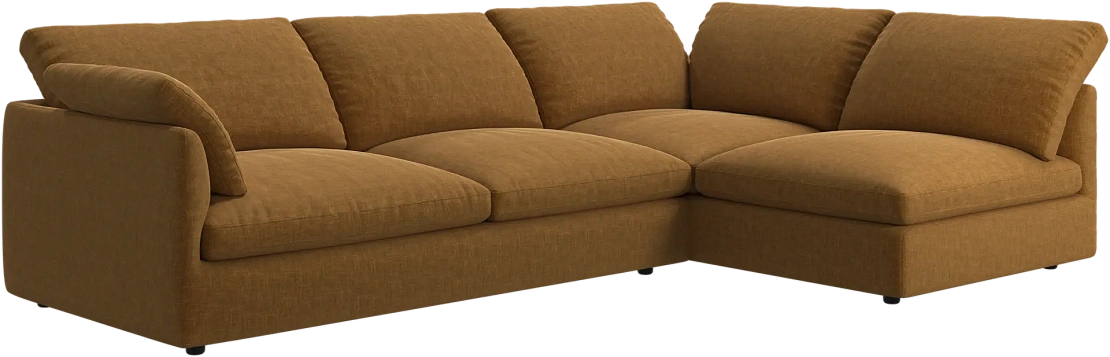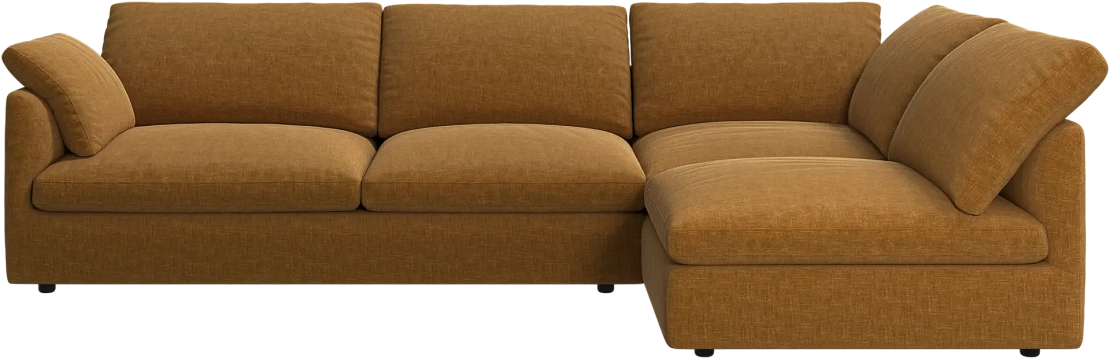 Аккуратно присборенные подушки спинки создают скульптурный и гостеприимный силуэт, который выглядит одновременно воздушным и уютным.