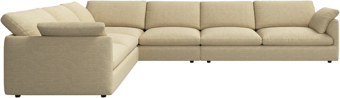 Аккуратно присборенные подушки спинки создают скульптурный и гостеприимный силуэт, который выглядит одновременно воздушным и уютным.