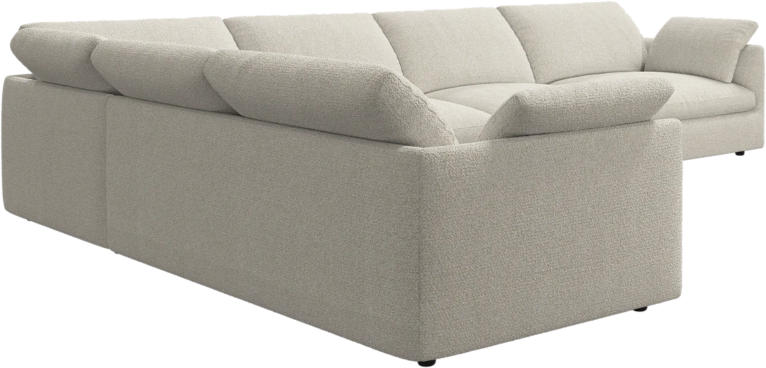 Аккуратно присборенные подушки спинки создают скульптурный и гостеприимный силуэт, который выглядит одновременно воздушным и уютным.