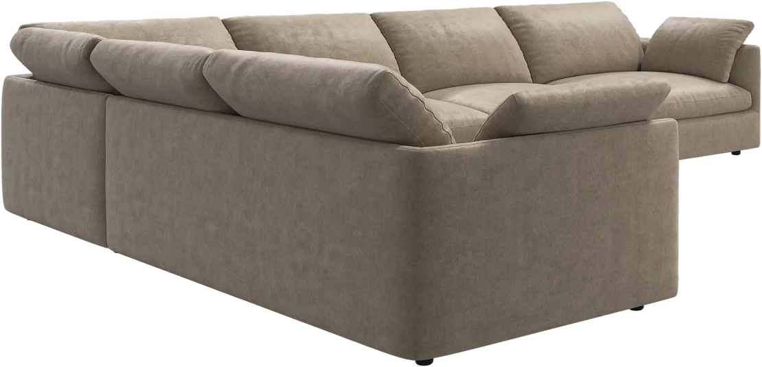 Аккуратно присборенные подушки спинки создают скульптурный и гостеприимный силуэт, который выглядит одновременно воздушным и уютным.