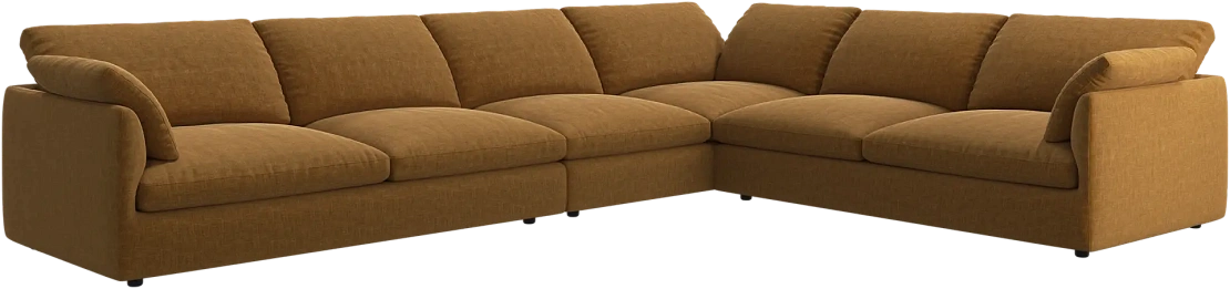 Аккуратно присборенные подушки спинки создают скульптурный и гостеприимный силуэт, который выглядит одновременно воздушным и уютным.