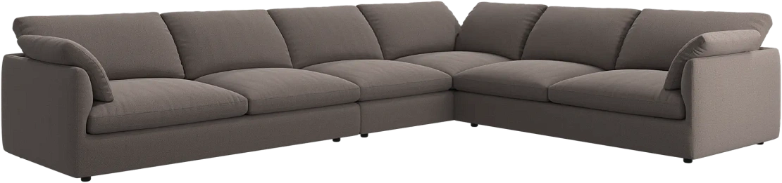 Аккуратно присборенные подушки спинки создают скульптурный и гостеприимный силуэт, который выглядит одновременно воздушным и уютным.