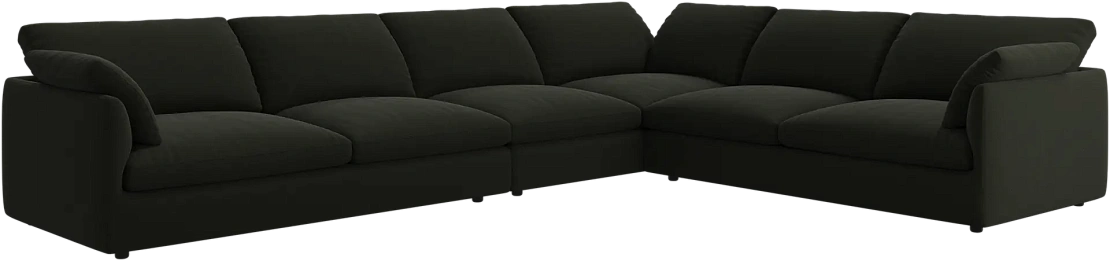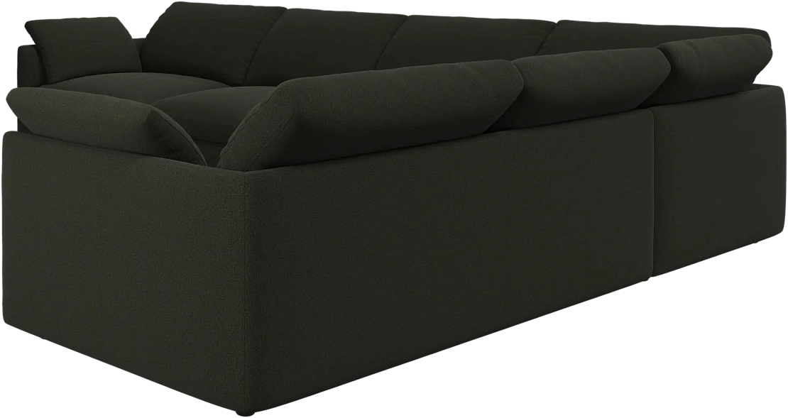 Аккуратно присборенные подушки спинки создают скульптурный и гостеприимный силуэт, который выглядит одновременно воздушным и уютным.