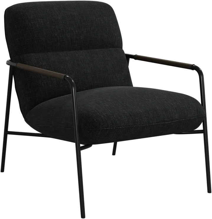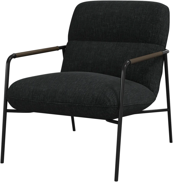 Матовая чёрная рама и дубовые подлокотники подчёркивают лаконичный дизайн и добавляют ему тёплый, натуральный акцент.